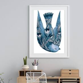 Quadro Andorinha Portuguesa - 60x48cm - Moldura: Madeira preta