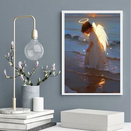 Quadro anjinho criança saindo do mar 24x18cm Moldura: madeira branca Informações do produto tire todas as suas dúvidas no descritivo abaixo: decoração para quarto, sala, cozinha, escritório, área gourmet e muito mais. Chega de paredes vazias medidas - cada peça tem 24x18cm a5 . Material do papel - papel fotográfico brilhante de altíssima resolução acabamento - todos os quadros são acompanhados de uma película de acetato para proteção da imagem. - os quadros são embalados de forma segura com plástico bolha com camada dupla de acordo com o tamanho dos quadros. Garantia - garantia de 3 meses. Meu quadro chegou. Como posso fixá-lo Você precisa apenas de um martelo e um prego, pois os quadros já vão acompanhados de penduradores. Esta é a forma mais indicada. Caso prefira, você pode utilizar uma fita dupla face neste caso, sugerimos de alta qualidade para evitar que descole e seu quadro caia . Como posso limpar meu quadro A limpeza é feita como um móvel comum da sua casa. Apenas um pano seco ou espanador são suficientes para tal