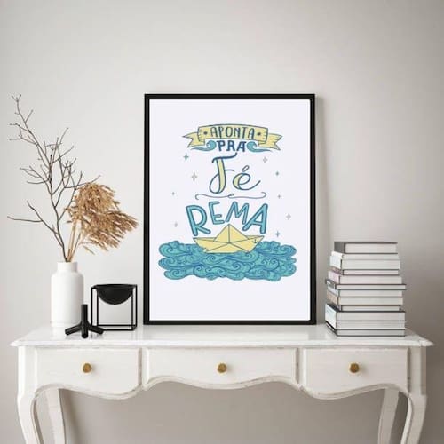 Quadro aponta pra fé e rema 33x24cm Cor: moldura preta Informações do produto tire todas as suas dúvidas no descritivo abaixo: decoração para quarto, sala, cozinha, escritório, área gourmet e muito mais. Chega de paredes vazias medidas - cada peça tem 33x24cm a4 . Material do papel - papel fotográfico brilhante de altíssima resolução acabamento - todos os quadros são acompanhados de uma película de acetato para proteção da imagem. - os quadros são embalados de forma segura com plástico bolha com camada dupla de acordo com o tamanho dos quadros. Garantia - garantia de 3 meses. Meu quadro chegou. Como posso fixá-lo Você precisa apenas de um martelo e um prego, pois os quadros já vão acompanhados de penduradores. Esta é a forma mais indicada. Caso prefira, você pode utilizar uma fita dupla face neste caso, sugerimos de alta qualidade para evitar que descole e seu quadro caia . Como posso limpar meu quadro A limpeza é feita como um móvel comum da sua casa. Apenas um pano seco ou espanador são suficientes para tal