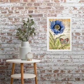 Quadro aquarela borboleta e flor 33x24cm - com vidro