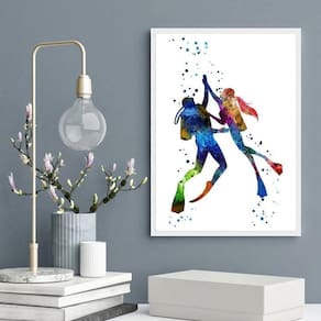 Quadro aquarela casal de mergulhadores 24x18cm Moldura: madeira preta Informações do produto tire todas as suas dúvidas no descritivo abaixo: decoração para quarto, sala, cozinha, escritório, área gourmet e muito mais. Chega de paredes vazias medidas - cada peça tem 24x18cm a5 . Material do papel - papel fotográfico brilhante de altíssima resolução acabamento - todos os quadros são acompanhados de uma película de acetato para proteção da imagem. - os quadros são embalados de forma segura com plástico bolha com camada dupla de acordo com o tamanho dos quadros. Garantia - garantia de 3 meses. Meu quadro chegou. Como posso fixá-lo Você precisa apenas de um martelo e um prego, pois os quadros já vão acompanhados de penduradores. Esta é a forma mais indicada. Caso prefira, você pode utilizar uma fita dupla face neste caso, sugerimos de alta qualidade para evitar que descole e seu quadro caia . Como posso limpar meu quadro A limpeza é feita como um móvel comum da sua casa. Apenas um pano seco ou espanador são suficientes para tal