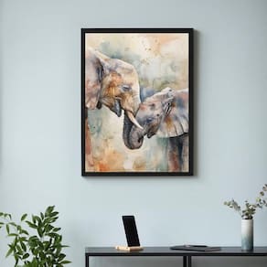 Quadro aquarela elefantes - mãe e filho 33x24cm - com vidro Cor: moldura branca Informações do produto tire todas as suas dúvidas no descritivo abaixo: decoração para quarto, sala, cozinha, escritório, área gourmet e muito mais. Chega de paredes vazias medidas - cada peça tem 33x24cm a4 . Material do papel - papel fotográfico brilhante de altíssima resolução acabamento - todos os quadros são acompanhados de vidro para proteção da imagem. - moldura em madeira maciça na cor preta ou branca conforme produto escolhido e pendurador . - os quadros são embalados de forma segura com plástico bolha com camada dupla de acordo com o tamanho dos quadros. - de 3 meses. Meu quadro chegou. Como posso fixá-lo Você precisa apenas de um martelo e um prego, pois os quadros já vão acompanhados de penduradores. Esta é a forma mais indicada. Como posso limpar meu quadro A limpeza é feita como um móvel comum da sua casa. Apenas um pano seco ou espanador são suficientes para tal Ean: 7891234559982