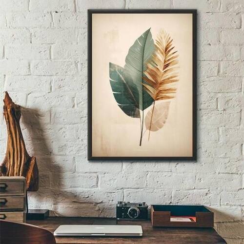 Quadro aquarela moderna folha cores suaves 45x34cm - com vidro Moldura: madeira preta Informações do produto tire todas as suas dúvidas no descritivo abaixo: decoração para quarto, sala, cozinha, escritório, área gourmet e muito mais. Chega de paredes vazias medidas - cada peça tem 45x34cm a3 . Material do papel - papel fotográfico brilhante de altíssima resolução acabamento - todos os quadros são acompanhados de vidro para proteção da imagem. - moldura em madeira maciça na cor preta ou branca conforme produto escolhido e pendurador . - os quadros são embalados de forma segura com plástico bolha com camada dupla de acordo com o tamanho dos quadros. Garantia - garantia de 3 meses. Meu quadro chegou. Como posso fixá-lo Você precisa apenas de um martelo e um prego, pois os quadros já vão acompanhados de penduradores. Esta é a forma mais indicada. Como posso limpar meu quadro A limpeza é feita como um móvel comum da sua casa. Apenas um pano seco ou espanador são suficientes para tal