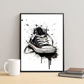 Quadro Aquarela Tênis Cano Alto Preto 45X34Cm