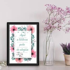 Quadro aqui a tristeza pula de alegria 33x24cm - com vidro Moldura: madeira branca Informações do produto tire todas as suas dúvidas no descritivo abaixo: decoração para quarto, sala, cozinha, escritório, área gourmet e muito mais. Chega de paredes vazias medidas - cada peça tem 33x24cm a4 . Material do papel - papel fotográfico brilhante de altíssima resolução acabamento - todos os quadros são acompanhados de vidro para proteção da imagem. - moldura em madeira maciça na cor preta e pendurador . - os quadros são embalados de forma segura com plástico bolha com camada dupla de acordo com o tamanho dos quadros. Garantia - garantia de 3 meses. Meu quadro chegou. Como posso fixá-lo Você precisa apenas de um martelo e um prego, pois os quadros já vão acompanhados de penduradores. Esta é a forma mais indicada. Como posso limpar meu quadro A limpeza é feita como um móvel comum da sua casa. Apenas um pano seco ou espanador são suficientes para tal Ean: 7897040467909