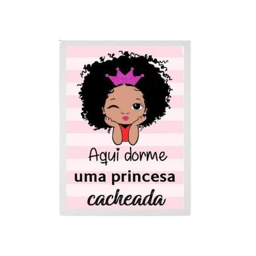 Quadro aqui dorme uma princesa cacheada 24x18cm - com vidro Moldura: madeira branca Informações do produto Decoração para quarto, sala, cozinha, escritório, área gourmet e muito mais. Chega de paredes vazias Medidas - cada peça tem 24x18cm a5 . Material do papel - papel fotográfico brilhante de altíssima resolução Acabamento - todos os quadros são acompanhados de vidro para proteção da imagem. - Os quadros são embalados de forma segura com plástico bolha com camada dupla de acordo com o tamanho dos quadros. - de 3 meses. Meu quadro chegou. Como posso fixá-lo Você precisa apenas de um martelo e um prego, pois os quadros já vão acompanhados de penduradores. Esta é a forma mais indicada. Como posso limpar meu quadro A limpeza é feita como um móvel comum da sua casa. Apenas um pano seco ou espanador são suficientes para tal