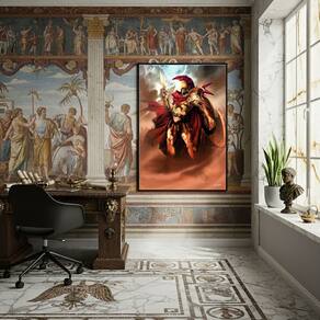 Quadro Ares Deus Grego da Guerra da Ira da Força - 70x50cm - Cor: Moldura Branca