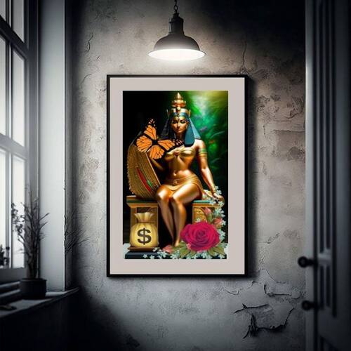 Quadro arquétipo cleópatra - 60x48cm Moldura: madeira preta Informações do produto tire todas as suas dúvidas no descritivo abaixo: decoração para quarto, sala, cozinha, escritório, área gourmet e muito mais. Chega de paredes vazias medidas - cada peça tem 60x48cm . Material do papel - papel fotográfico brilhante de altíssima resolução acabamento - todos os quadros são acompanhados de vidro para proteção da imagem. - moldura em madeira maciça na cor preta ou branca conforme produto escolhido e pendurador. - paspatur branco com 7cm de largura - os quadros são embalados de forma segura com plástico bolha com camada dupla de acordo com o tamanho dos quadros. Garantia - garantia de 3 meses. Meu quadro chegou. Como posso fixá-lo Você precisa apenas de um martelo e um prego, pois os quadros já vão acompanhados de penduradores. Esta é a forma mais indicada. Como posso limpar meu quadro A limpeza é feita como um móvel comum da sua casa. Apenas um pano seco ou espanador são suficientes para tal Ean: 7897670019578
