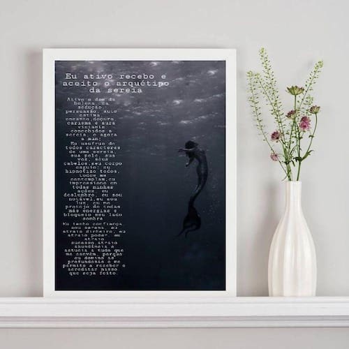 Quadro arquétipo da sereia- ativação 45x34cm - com vidro Moldura: madeira branca Informações do produto tire todas as suas dúvidas no descritivo abaixo: decoração para quarto, sala, cozinha, escritório, área gourmet e muito mais. Chega de paredes vazias medidas - cada peça tem 45x34cm a3 . Material do papel - papel fotográfico brilhante de altíssima resolução acabamento - todos os quadros são acompanhados de vidro para proteção da imagem. - moldura em madeira maciça na cor preta ou branca conforme produto escolhido e pendurador . - os quadros são embalados de forma segura com plástico bolha com camada dupla de acordo com o tamanho dos quadros. Garantia - garantia de 3 meses. Meu quadro chegou. Como posso fixá-lo Você precisa apenas de um martelo e um prego, pois os quadros já vão acompanhados de penduradores. Esta é a forma mais indicada. Como posso limpar meu quadro A limpeza é feita como um móvel comum da sua casa. Apenas um pano seco ou espanador são suficientes para tal Ean: 7897374075047