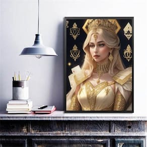 Quadro arquétipo rainha de ouros 45x34cm - com vidro Moldura: madeira branca Informações do produto tire todas as suas dúvidas no descritivo abaixo: decoração para quarto, sala, cozinha, escritório, área gourmet e muito mais. Chega de paredes vazias medidas - cada peça tem 45x34cm a3 . Material do papel - papel fotográfico brilhante de altíssima resolução acabamento - todos os quadros são acompanhados de vidro para proteção da imagem. - moldura em madeira maciça na cor preta ou branca conforme produto escolhido e pendurador . - os quadros são embalados de forma segura com plástico bolha com camada dupla de acordo com o tamanho dos quadros. Garantia - garantia de 3 meses. Meu quadro chegou. Como posso fixá-lo Você precisa apenas de um martelo e um prego, pois os quadros já vão acompanhados de penduradores. Esta é a forma mais indicada. Como posso limpar meu quadro A limpeza é feita como um móvel comum da sua casa. Apenas um pano seco ou espanador são suficientes para tal