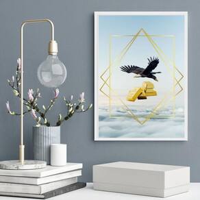 Quadro arquétipo sucesso financeiro - águia ouro 45x34cm - com vidro Moldura: madeira preta Informações do produto tire todas as suas dúvidas no descritivo abaixo: decoração para quarto, sala, cozinha, escritório, área gourmet e muito mais. Chega de paredes vazias medidas - cada peça tem 45x34cm a3 . Material do papel - papel fotográfico brilhante de altíssima resolução acabamento - todos os quadros são acompanhados de vidro para proteção da imagem. - moldura em madeira maciça na cor preta ou branca conforme produto escolhido e pendurador . - os quadros são embalados de forma segura com plástico bolha com camada dupla de acordo com o tamanho dos quadros. Garantia - garantia de 3 meses. Meu quadro chegou. Como posso fixá-lo Você precisa apenas de um martelo e um prego, pois os quadros já vão acompanhados de penduradores. Esta é a forma mais indicada. Como posso limpar meu quadro A limpeza é feita como um móvel comum da sua casa. Apenas um pano seco ou espanador são suficientes para tal