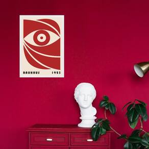 Quadro Arte Bauhaus Vermelho e Bege - Olho 45x34cm - com vidro - Cor: Moldura preta
