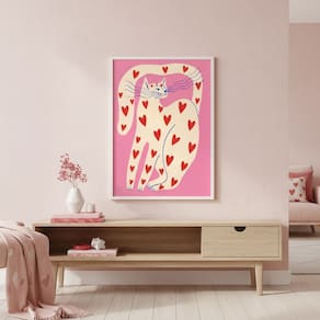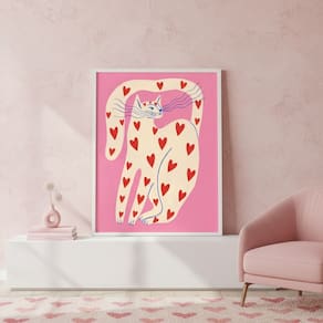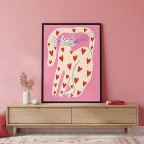 Quadro Arte Moderna Gato do Amor 70x50cm Mold Branca