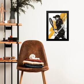 Quadro Arte Mulher Tenista - Preto E Amarelo 33X24Cm