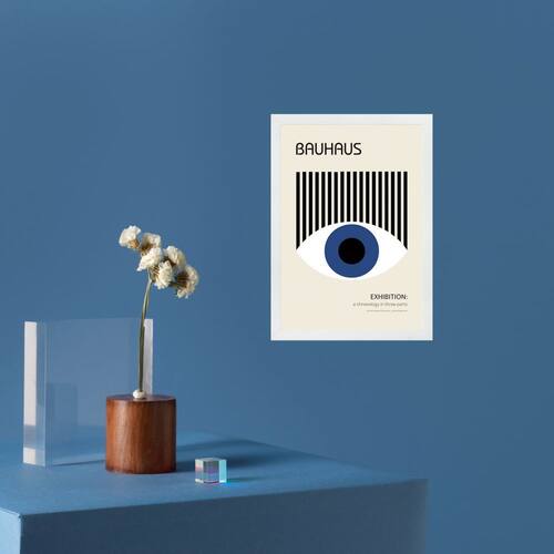 Quadro Arte Olho Azul - Bauhaus 45x34cm - com vidro - Cor: Moldura preta