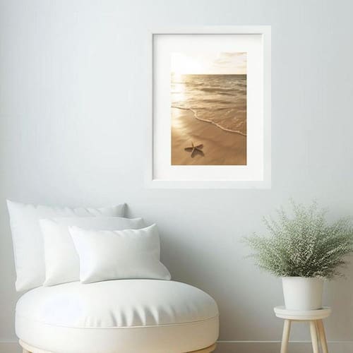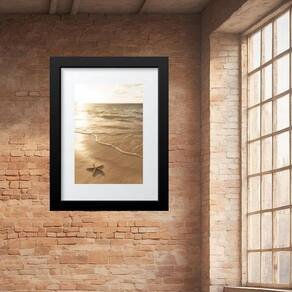 Quadro arte praia bege areia estrela- 60x48cm Cor: moldura preta Informações do produto tire todas as suas dúvidas no descritivo abaixo: decoração para quarto, sala, cozinha, escritório, área gourmet e muito mais. Chega de paredes vazias medidas - cada peça tem 60x48cm . Material do papel - papel fotográfico brilhante de altíssima resolução acabamento - todos os quadros são acompanhados de vidro para proteção da imagem. - moldura em madeira maciça na cor preta ou branca conforme produto escolhido e pendurador. - paspatur branco com 7cm de largura - os quadros são embalados de forma segura com plástico bolha com camada dupla de acordo com o tamanho dos quadros. - de 3 meses. Meu quadro chegou. Como posso fixá-lo Você precisa apenas de um martelo e um prego, pois os quadros já vão acompanhados de penduradores. Esta é a forma mais indicada. Como posso limpar meu quadro A limpeza é feita como um móvel comum da sua casa. Apenas um pano seco ou espanador são suficientes para tal