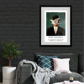 Quadro arte rene magritte - 60x48cm Moldura: madeira preta Informações do produto tire todas as suas dúvidas no descritivo abaixo: decoração para quarto, sala, cozinha, escritório, área gourmet e muito mais. Chega de paredes vazias medidas - cada peça tem 60x48cm . Material do papel - papel fotográfico brilhante de altíssima resolução acabamento - todos os quadros são acompanhados de vidro para proteção da imagem. - moldura em madeira maciça na cor preta ou branca conforme produto escolhido e pendurador. - paspatur branco com 7cm de largura - os quadros são embalados de forma segura com plástico bolha com camada dupla de acordo com o tamanho dos quadros. Garantia - garantia de 3 meses. Meu quadro chegou. Como posso fixá-lo Você precisa apenas de um martelo e um prego, pois os quadros já vão acompanhados de penduradores. Esta é a forma mais indicada. Como posso limpar meu quadro A limpeza é feita como um móvel comum da sua casa. Apenas um pano seco ou espanador são suficientes para tal