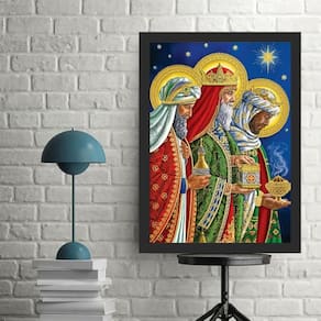 Quadro arte sagrada 3 reis magos 33x24cm Cor: moldura branca Informações do produto tire todas as suas dúvidas no descritivo abaixo: decoração para quarto, sala, cozinha, escritório, área gourmet e muito mais. Chega de paredes vazias medidas - cada peça tem 33x24cm a4 . Material do papel - papel fotográfico brilhante de altíssima resolução acabamento - todos os quadros são acompanhados de uma película de acetato para proteção da imagem. - os quadros são embalados de forma segura com plástico bolha com camada dupla de acordo com o tamanho dos quadros. Garantia - garantia de 3 meses. Meu quadro chegou. Como posso fixá-lo Você precisa apenas de um martelo e um prego, pois os quadros já vão acompanhados de penduradores. Esta é a forma mais indicada. Caso prefira, você pode utilizar uma fita dupla face neste caso, sugerimos de alta qualidade para evitar que descole e seu quadro caia . Como posso limpar meu quadro A limpeza é feita como um móvel comum da sua casa. Apenas um pano seco ou espanador são suficientes para tal