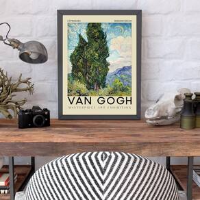 Quadro arte van gogh - cypresses 24x18cm - com vidro Moldura: madeira branca Informações do produto tire todas as suas dúvidas no descritivo abaixo: decoração para quarto, sala, cozinha, escritório, área gourmet e muito mais. Chega de paredes vazias medidas - cada peça tem 24x18cm a5 . Material do papel - papel fotográfico brilhante de altíssima resolução acabamento - todos os quadros são acompanhados de vidro para proteção da imagem. - moldura em madeira maciça na cor preta ou branca conforme produto escolhido e pendurador . - os quadros são embalados de forma segura com plástico bolha com camada dupla de acordo com o tamanho dos quadros. Garantia - garantia de 3 meses. Meu quadro chegou. Como posso fixá-lo Você precisa apenas de um martelo e um prego, pois os quadros já vão acompanhados de penduradores. Esta é a forma mais indicada. Como posso limpar meu quadro A limpeza é feita como um móvel comum da sua casa. Apenas um pano seco ou espanador são suficientes para tal