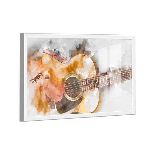 Quadro Arte Violão Aquarela -- BR ARTES Moldura Branca e Vidro - Médio 84x54 -