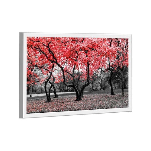 Quadro Árvores Branco e Vermelho Moldura Branca - Ultra Grande 150x100 -