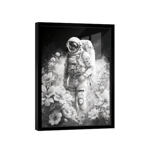 Quadro Astronauta Flores -- Br Artes Quadro Astronauta Flores -- BR ARTES Moldura Preta e Vidro - Gigante 180x105 - - Qualidade Premium (padrão museu)