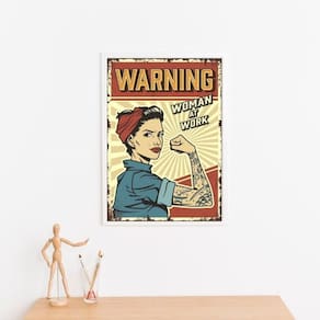 Quadro atenção mulheres trabalhando 33x24cm Cor: moldura branca Informações do produto tire todas as suas dúvidas no descritivo abaixo: decoração para quarto, sala, cozinha, escritório, área gourmet e muito mais. Chega de paredes vazias medidas - cada peça tem 33x24cm a4 . Material do papel - papel fotográfico brilhante de altíssima resolução acabamento - todos os quadros são acompanhados de uma película de acetato para proteção da imagem. - os quadros são embalados de forma segura com plástico bolha com camada dupla de acordo com o tamanho dos quadros. - de 3 meses. Meu quadro chegou. Como posso fixá-lo Você precisa apenas de um martelo e um prego, pois os quadros já vão acompanhados de penduradores. Esta é a forma mais indicada. Caso prefira, você pode utilizar uma fita dupla face neste caso, sugerimos de alta qualidade para evitar que descole e seu quadro caia . Como posso limpar meu quadro A limpeza é feita como um móvel comum da sua casa. Apenas um pano seco ou espanador são suficientes para tal Marca: Não Informado Ean: 7891234548580