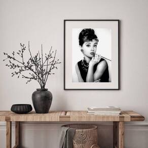 Quadro audrey bonequinha de luxo - 60x48cm Moldura: madeira preta Informações do produto tire todas as suas dúvidas no descritivo abaixo: decoração para quarto, sala, cozinha, escritório, área gourmet e muito mais. Chega de paredes vazias medidas - cada peça tem 60x48cm . Material do papel - papel fotográfico brilhante de altíssima resolução acabamento - todos os quadros são acompanhados de vidro para proteção da imagem. - moldura em madeira maciça na cor preta ou branca conforme produto escolhido e pendurador. - paspatur branco com 7cm de largura - os quadros são embalados de forma segura com plástico bolha com camada dupla de acordo com o tamanho dos quadros. - de 3 meses. Meu quadro chegou. Como posso fixá-lo Você precisa apenas de um martelo e um prego, pois os quadros já vão acompanhados de penduradores. Esta é a forma mais indicada. Como posso limpar meu quadro A limpeza é feita como um móvel comum da sua casa. Apenas um pano seco ou espanador são suficientes para tal Marca: Não Informado