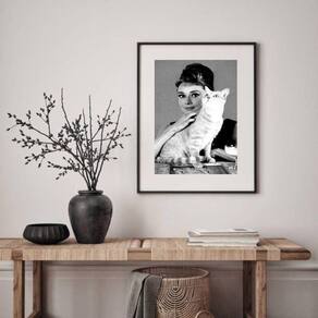 Quadro audrey hepburn com gato - 60x48cm