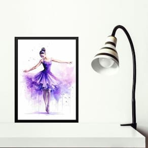 Quadro bailarina lilás- aquarela 33x24cm - com vidro Cor: moldura branca Informações do produto tire todas as suas dúvidas no descritivo abaixo: decoração para quarto, sala, cozinha, escritório, área gourmet e muito mais. Chega de paredes vazias medidas - cada peça tem 33x24cm a4 . Material do papel - papel fotográfico brilhante de altíssima resolução acabamento - todos os quadros são acompanhados de vidro para proteção da imagem. - moldura em madeira maciça na cor preta ou branca conforme produto escolhido e pendurador . - os quadros são embalados de forma segura com plástico bolha com camada dupla de acordo com o tamanho dos quadros. - de 3 meses. Meu quadro chegou. Como posso fixá-lo Você precisa apenas de um martelo e um prego, pois os quadros já vão acompanhados de penduradores. Esta é a forma mais indicada. Como posso limpar meu quadro A limpeza é feita como um móvel comum da sua casa. Apenas um pano seco ou espanador são suficientes para tal Ean: 7896385582735