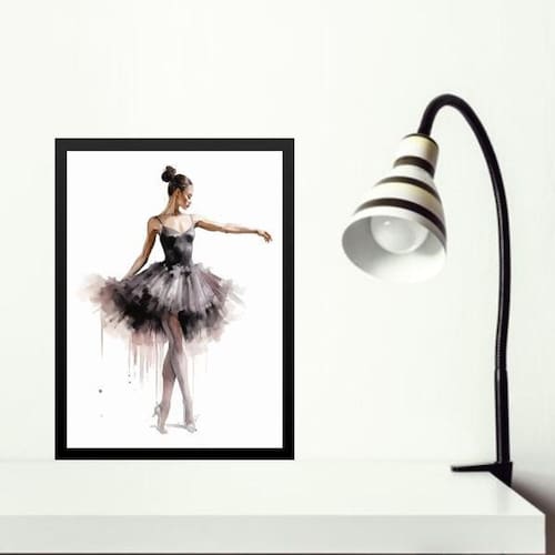 Quadro bailarina preta- aquarela 24x18cm - com vidro Cor: moldura branca Informações do produto tire todas as suas dúvidas no descritivo abaixo: decoração para quarto, sala, cozinha, escritório, área gourmet e muito mais. Chega de paredes vazias medidas - cada peça tem 24x18cm a5 . Material do papel - papel fotográfico brilhante de altíssima resolução acabamento - todos os quadros são acompanhados de vidro para proteção da imagem. - moldura em madeira maciça na cor preta ou branca conforme produto escolhido e pendurador . - os quadros são embalados de forma segura com plástico bolha com camada dupla de acordo com o tamanho dos quadros. Garantia - garantia de 3 meses. Meu quadro chegou. Como posso fixá-lo Você precisa apenas de um martelo e um prego, pois os quadros já vão acompanhados de penduradores. Esta é a forma mais indicada. Como posso limpar meu quadro A limpeza é feita como um móvel comum da sua casa. Apenas um pano seco ou espanador são suficientes para tal
