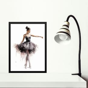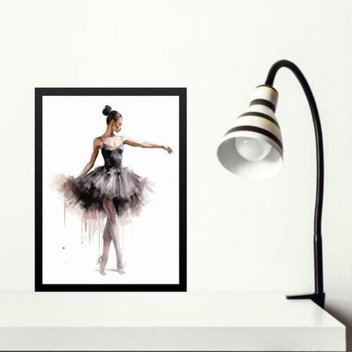 Quadro bailarina preta- aquarela 24x18cm Cor: moldura branca Informações do produto tire todas as suas dúvidas no descritivo abaixo: decoração para quarto, sala, cozinha, escritório, área gourmet e muito mais. Chega de paredes vazias medidas - cada peça tem 24x18cm a5 . Material do papel - papel fotográfico brilhante de altíssima resolução acabamento - todos os quadros são acompanhados de uma película de acetato para proteção da imagem. - os quadros são embalados de forma segura com plástico bolha com camada dupla de acordo com o tamanho dos quadros. Garantia - garantia de 3 meses. Meu quadro chegou. Como posso fixá-lo Você precisa apenas de um martelo e um prego, pois os quadros já vão acompanhados de penduradores. Esta é a forma mais indicada. Caso prefira, você pode utilizar uma fita dupla face neste caso, sugerimos de alta qualidade para evitar que descole e seu quadro caia . Como posso limpar meu quadro A limpeza é feita como um móvel comum da sua casa. Apenas um pano seco ou espanador são suficientes para tal