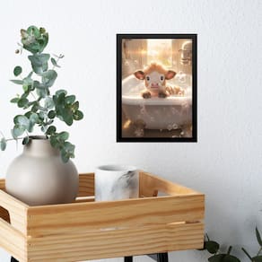 Quadro banheiro bezerro tomando banho 33x24cm Cor: moldura branca Informações do produto tire todas as suas dúvidas no descritivo abaixo: decoração para quarto, sala, cozinha, escritório, área gourmet e muito mais. Chega de paredes vazias medidas - cada peça tem 33x24cm a4 . Material do papel - papel fotográfico brilhante de altíssima resolução acabamento - todos os quadros são acompanhados de uma película de acetato para proteção da imagem. - os quadros são embalados de forma segura com plástico bolha com camada dupla de acordo com o tamanho dos quadros. Garantia - garantia de 3 meses. Meu quadro chegou. Como posso fixá-lo Você precisa apenas de um martelo e um prego, pois os quadros já vão acompanhados de penduradores. Esta é a forma mais indicada. Caso prefira, você pode utilizar uma fita dupla face neste caso, sugerimos de alta qualidade para evitar que descole e seu quadro caia . Como posso limpar meu quadro A limpeza é feita como um móvel comum da sua casa. Apenas um pano seco ou espanador são suficientes para tal