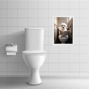 Quadro banheiro cão maltês lendo jornal 24x18cm - com vidro Cor: moldura branca Informações do produto tire todas as suas dúvidas no descritivo abaixo: decoração para quarto, sala, cozinha, escritório, área gourmet e muito mais. Chega de paredes vazias medidas - cada peça tem 24x18cm a5 . Material do papel - papel fotográfico brilhante de altíssima resolução acabamento - todos os quadros são acompanhados de vidro para proteção da imagem. - moldura em madeira maciça na cor preta ou branca conforme produto escolhido e pendurador . - os quadros são embalados de forma segura com plástico bolha com camada dupla de acordo com o tamanho dos quadros. Garantia - garantia de 3 meses. Meu quadro chegou. Como posso fixá-lo Você precisa apenas de um martelo e um prego, pois os quadros já vão acompanhados de penduradores. Esta é a forma mais indicada. Como posso limpar meu quadro A limpeza é feita como um móvel comum da sua casa. Apenas um pano seco ou espanador são suficientes para tal