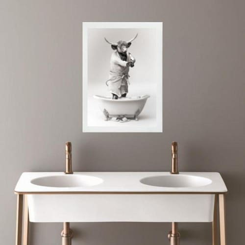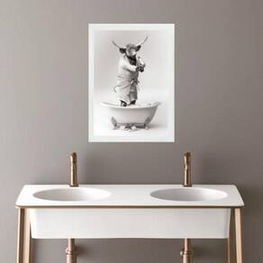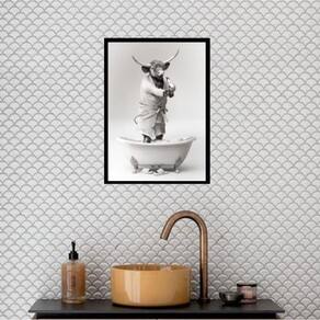Quadro banheiro coleção animais - boi 45x34cm Moldura: madeira preta Informações do produto tire todas as suas dúvidas no descritivo abaixo: decoração para quarto, sala, cozinha, escritório, área gourmet e muito mais. Chega de paredes vazias. Medidas - cada peça tem 45x34cm a3 . Material do papel - papel fotográfico brilhante de altíssima resolução acabamento - todos os quadros são acompanhados de uma película de acetato para proteção da imagem. - os quadros são embalados de forma segura com plástico bolha com camada dupla de acordo com o tamanho dos quadros. Garantia - garantia de 3 meses. Meu quadro chegou. Como posso fixá-lo Você precisa apenas de um martelo e um prego, pois os quadros já vão acompanhados de penduradores. Esta é a forma mais indicada. Caso prefira, você pode utilizar uma fita dupla face neste caso, sugerimos de alta qualidade para evitar que descole e seu quadro caia . Como posso limpar meu quadro A limpeza é feita como um móvel comum da sua casa. Apenas um pano seco ou espanador são suficientes para tal