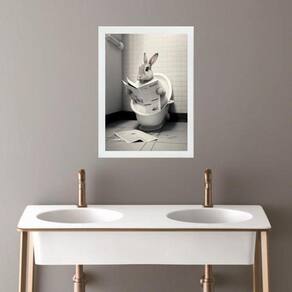 Quadro banheiro coleção animais - coelho 24x18cm - com vidro Moldura: madeira branca Informações do produto tire todas as suas dúvidas no descritivo abaixo: decoração para quarto, sala, cozinha, escritório, área gourmet e muito mais. Chega de paredes vazias medidas - cada peça tem 24x18cm a5 . Material do papel - papel fotográfico brilhante de altíssima resolução acabamento - todos os quadros são acompanhados de vidro para proteção da imagem. - moldura em madeira maciça na cor preta ou branca conforme produto escolhido e pendurador . - os quadros são embalados de forma segura com plástico bolha com camada dupla de acordo com o tamanho dos quadros. Garantia - garantia de 3 meses. Meu quadro chegou. Como posso fixá-lo Você precisa apenas de um martelo e um prego, pois os quadros já vão acompanhados de penduradores. Esta é a forma mais indicada. Como posso limpar meu quadro A limpeza é feita como um móvel comum da sua casa. Apenas um pano seco ou espanador são suficientes para tal