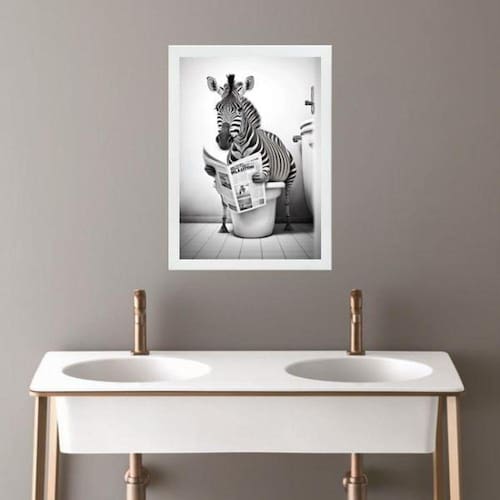 Quadro banheiro coleção animais - zebra 45x34cm Moldura: madeira preta Informações do produto tire todas as suas dúvidas no descritivo abaixo: decoração para quarto, sala, cozinha, escritório, área gourmet e muito mais. Chega de paredes vazias. Medidas - cada peça tem 45x34cm a3 . Material do papel - papel fotográfico brilhante de altíssima resolução acabamento - todos os quadros são acompanhados de uma película de acetato para proteção da imagem. - os quadros são embalados de forma segura com plástico bolha com camada dupla de acordo com o tamanho dos quadros. Garantia - garantia de 3 meses. Meu quadro chegou. Como posso fixá-lo Você precisa apenas de um martelo e um prego, pois os quadros já vão acompanhados de penduradores. Esta é a forma mais indicada. Caso prefira, você pode utilizar uma fita dupla face neste caso, sugerimos de alta qualidade para evitar que descole e seu quadro caia . Como posso limpar meu quadro A limpeza é feita como um móvel comum da sua casa. Apenas um pano seco ou espanador são suficientes para tal