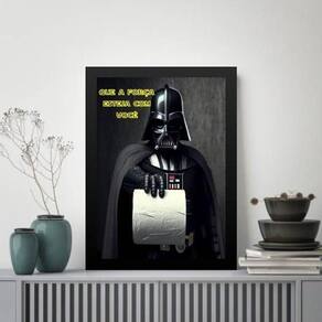 Quadro banheiro darth papel higiênico 33x24cm - com vidro Cor: moldura branca Informações do produto tire todas as suas dúvidas no descritivo abaixo: decoração para quarto, sala, cozinha, escritório, área gourmet e muito mais. Chega de paredes vazias medidas - cada peça tem 33x24cm a4 . Material do papel - papel fotográfico brilhante de altíssima resolução acabamento - todos os quadros são acompanhados de vidro para proteção da imagem. - moldura em madeira maciça na cor preta ou branca conforme produto escolhido e pendurador . - os quadros são embalados de forma segura com plástico bolha com camada dupla de acordo com o tamanho dos quadros. - de 3 meses. Meu quadro chegou. Como posso fixá-lo Você precisa apenas de um martelo e um prego, pois os quadros já vão acompanhados de penduradores. Esta é a forma mais indicada. Como posso limpar meu quadro A limpeza é feita como um móvel comum da sua casa. Apenas um pano seco ou espanador são suficientes para tal Marca: Não Informado Ean: 7894626610698