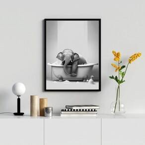 Quadro banheiro elefantinho - hora do banho 24x18cm Cor: moldura branca Informações do produto tire todas as suas dúvidas no descritivo abaixo: decoração para quarto, sala, cozinha, escritório, área gourmet e muito mais. Chega de paredes vazias medidas - cada peça tem 24x18cm a5 . Material do papel - papel fotográfico brilhante de altíssima resolução acabamento - todos os quadros são acompanhados de uma película de acetato para proteção da imagem. - os quadros são embalados de forma segura com plástico bolha com camada dupla de acordo com o tamanho dos quadros. Garantia - garantia de 3 meses. Meu quadro chegou. Como posso fixá-lo Você precisa apenas de um martelo e um prego, pois os quadros já vão acompanhados de penduradores. Esta é a forma mais indicada. Caso prefira, você pode utilizar uma fita dupla face neste caso, sugerimos de alta qualidade para evitar que descole e seu quadro caia . Como posso limpar meu quadro A limpeza é feita como um móvel comum da sua casa. Apenas um pano seco ou espanador são suficientes para tal
