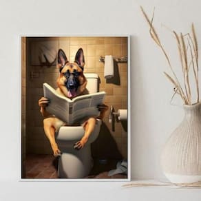 Quadro banheiro pastor alemão lendo jornal 24x18cm Cor: moldura branca Informações do produto tire todas as suas dúvidas no descritivo abaixo: decoração para quarto, sala, cozinha, escritório, área gourmet e muito mais. Chega de paredes vazias medidas - cada peça tem 24x18cm a5 . Material do papel - papel fotográfico brilhante de altíssima resolução acabamento - todos os quadros são acompanhados de uma película de acetato para proteção da imagem. - os quadros são embalados de forma segura com plástico bolha com camada dupla de acordo com o tamanho dos quadros. - de 3 meses. Meu quadro chegou. Como posso fixá-lo Você precisa apenas de um martelo e um prego, pois os quadros já vão acompanhados de penduradores. Esta é a forma mais indicada. Caso prefira, você pode utilizar uma fita dupla face neste caso, sugerimos de alta qualidade para evitar que descole e seu quadro caia . Como posso limpar meu quadro A limpeza é feita como um móvel comum da sua casa. Apenas um pano seco ou espanador são suficientes para tal Marca: Não Informado Ean: 7891234557742