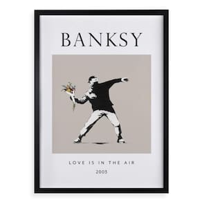 Quadro banksy love is in the air 24x18cm Cor: moldura branca Informações do produto tire todas as suas dúvidas no descritivo abaixo: decoração para quarto, sala, cozinha, escritório, área gourmet e muito mais. Chega de paredes vazias medidas - cada peça tem 24x18cm a5 . Material do papel - papel fotográfico brilhante de altíssima resolução acabamento - todos os quadros são acompanhados de uma película de acetato para proteção da imagem. - os quadros são embalados de forma segura com plástico bolha com camada dupla de acordo com o tamanho dos quadros. - de 3 meses. Meu quadro chegou. Como posso fixá-lo Você precisa apenas de um martelo e um prego, pois os quadros já vão acompanhados de penduradores. Esta é a forma mais indicada. Caso prefira, você pode utilizar uma fita dupla face neste caso, sugerimos de alta qualidade para evitar que descole e seu quadro caia . Como posso limpar meu quadro A limpeza é feita como um móvel comum da sua casa. Apenas um pano seco ou espanador são suficientes para tal Marca: Não Informado Ean: 7908991770977