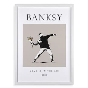 Quadro banksy love is in the air 33x24cm Cor: moldura branca Informações do produto tire todas as suas dúvidas no descritivo abaixo: decoração para quarto, sala, cozinha, escritório, área gourmet e muito mais. Chega de paredes vazias medidas - cada peça tem 33x24cm a4 . Material do papel - papel fotográfico brilhante de altíssima resolução acabamento - todos os quadros são acompanhados de uma película de acetato para proteção da imagem. - os quadros são embalados de forma segura com plástico bolha com camada dupla de acordo com o tamanho dos quadros. - de 3 meses. Meu quadro chegou. Como posso fixá-lo Você precisa apenas de um martelo e um prego, pois os quadros já vão acompanhados de penduradores. Esta é a forma mais indicada. Caso prefira, você pode utilizar uma fita dupla face neste caso, sugerimos de alta qualidade para evitar que descole e seu quadro caia . Como posso limpar meu quadro A limpeza é feita como um móvel comum da sua casa. Apenas um pano seco ou espanador são suficientes para tal Marca: Não Informado Ean: 7908991770991