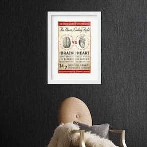 Quadro batalha cérebro x coração - 60x48cm Moldura: madeira preta Informações do produto tire todas as suas dúvidas no descritivo abaixo: decoração para quarto, sala, cozinha, escritório, área gourmet e muito mais. Chega de paredes vazias medidas - cada peça tem 60x48cm . Material do papel - papel fotográfico brilhante de altíssima resolução acabamento - todos os quadros são acompanhados de vidro para proteção da imagem. - moldura em madeira maciça na cor preta ou branca conforme produto escolhido e pendurador. - paspatur branco com 7cm de largura - os quadros são embalados de forma segura com plástico bolha com camada dupla de acordo com o tamanho dos quadros. Garantia - garantia de 3 meses. Meu quadro chegou. Como posso fixá-lo Você precisa apenas de um martelo e um prego, pois os quadros já vão acompanhados de penduradores. Esta é a forma mais indicada. Como posso limpar meu quadro A limpeza é feita como um móvel comum da sua casa. Apenas um pano seco ou espanador são suficientes para tal Ean: 7892939585221