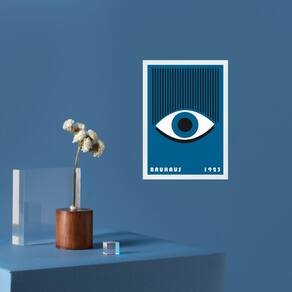 Quadro Bauhaus Azul Olho - Awakeful Lashes 45x34cm - com vidro - Cor: Moldura branca