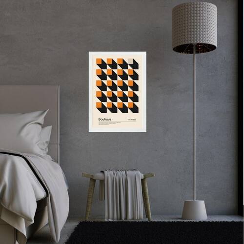 Quadro bauhaus laranja - cubos 33x24cm - com vidro Cor: moldura preta Informações do produto tire todas as suas dúvidas no descritivo abaixo: decoração para quarto, sala, cozinha, escritório, área gourmet e muito mais. Chega de paredes vazias medidas - cada peça tem 33x24cm a4 . Material do papel - papel fotográfico brilhante de altíssima resolução acabamento - todos os quadros são acompanhados de vidro para proteção da imagem. - moldura em madeira maciça na cor preta ou branca conforme produto escolhido e pendurador . - os quadros são embalados de forma segura com plástico bolha com camada dupla de acordo com o tamanho dos quadros. - de 3 meses. Meu quadro chegou. Como posso fixá-lo Você precisa apenas de um martelo e um prego, pois os quadros já vão acompanhados de penduradores. Esta é a forma mais indicada. Como posso limpar meu quadro A limpeza é feita como um móvel comum da sua casa. Apenas um pano seco ou espanador são suficientes para tal