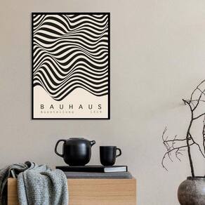 Quadro bauhaus ondas bege com preto 45x34cm Moldura: madeira branca Informações do produto tire todas as suas dúvidas no descritivo abaixo: decoração para quarto, sala, cozinha, escritório, área gourmet e muito mais. Chega de paredes vazias. Medidas - cada peça tem 45x34cm a3 . Material do papel - papel fotográfico brilhante de altíssima resolução acabamento - todos os quadros são acompanhados de uma película de acetato para proteção da imagem. - os quadros são embalados de forma segura com plástico bolha com camada dupla de acordo com o tamanho dos quadros. Garantia - garantia de 3 meses. Meu quadro chegou. Como posso fixá-lo Você precisa apenas de um martelo e um prego, pois os quadros já vão acompanhados de penduradores. Esta é a forma mais indicada. Caso prefira, você pode utilizar uma fita dupla face neste caso, sugerimos de alta qualidade para evitar que descole e seu quadro caia . Como posso limpar meu quadro A limpeza é feita como um móvel comum da sua casa. Apenas um pano seco ou espanador são suficientes para tal