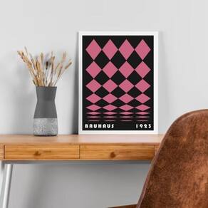 Quadro bauhaus pink poster - rolled diamonds 33x24cm Cor: moldura preta Informações do produto tire todas as suas dúvidas no descritivo abaixo: decoração para quarto, sala, cozinha, escritório, área gourmet e muito mais. Chega de paredes vazias medidas - cada peça tem 33x24cm a4 . Material do papel - papel fotográfico brilhante de altíssima resolução acabamento - todos os quadros são acompanhados de uma película de acetato para proteção da imagem. - os quadros são embalados de forma segura com plástico bolha com camada dupla de acordo com o tamanho dos quadros. - de 3 meses. Meu quadro chegou. Como posso fixá-lo Você precisa apenas de um martelo e um prego, pois os quadros já vão acompanhados de penduradores. Esta é a forma mais indicada. Caso prefira, você pode utilizar uma fita dupla face neste caso, sugerimos de alta qualidade para evitar que descole e seu quadro caia . Como posso limpar meu quadro A limpeza é feita como um móvel comum da sua casa. Apenas um pano seco ou espanador são suficientes para tal Marca: Não Informado Ean: 7908991777624