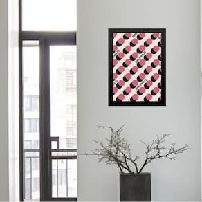 Quadro bauhaus pink- scrolling dots 33x24cm - com vidro Cor: moldura branca Informações do produto tire todas as suas dúvidas no descritivo abaixo: decoração para quarto, sala, cozinha, escritório, área gourmet e muito mais. Chega de paredes vazias medidas - cada peça tem 33x24cm a4 . Material do papel - papel fotográfico brilhante de altíssima resolução acabamento - todos os quadros são acompanhados de vidro para proteção da imagem. - moldura em madeira maciça na cor preta ou branca conforme produto escolhido e pendurador . - os quadros são embalados de forma segura com plástico bolha com camada dupla de acordo com o tamanho dos quadros. - de 3 meses. Meu quadro chegou. Como posso fixá-lo Você precisa apenas de um martelo e um prego, pois os quadros já vão acompanhados de penduradores. Esta é a forma mais indicada. Como posso limpar meu quadro A limpeza é feita como um móvel comum da sua casa. Apenas um pano seco ou espanador são suficientes para tal
