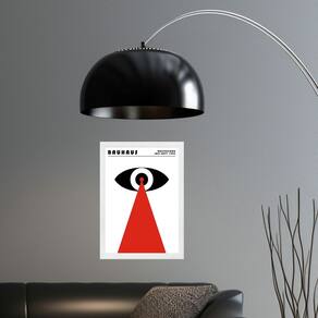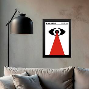 Quadro Bauhaus Preto e Vermelho - Olho Geométrico 45x34cm - com vidro - Cor: Moldura branca