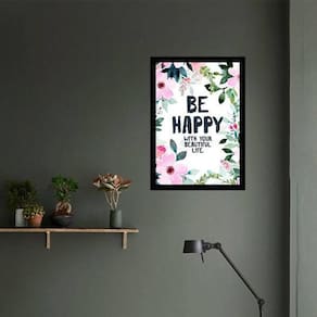 Quadro be happy 33x24cm - com vidro Moldura: madeira preta Informações do produto tire todas as suas dúvidas no descritivo abaixo: decoração para quarto, sala, cozinha, escritório, área gourmet e muito mais. Chega de paredes vazias medidas - cada peça tem 33x24cm a4 . Material do papel - papel fotográfico brilhante de altíssima resolução acabamento - todos os quadros são acompanhados de vidro para proteção da imagem. - moldura em madeira maciça na cor preta e pendurador . - os quadros são embalados de forma segura com plástico bolha com camada dupla de acordo com o tamanho dos quadros. - de 3 meses. Meu quadro chegou. Como posso fixá-lo Você precisa apenas de um martelo e um prego, pois os quadros já vão acompanhados de penduradores. Esta é a forma mais indicada. Como posso limpar meu quadro A limpeza é feita como um móvel comum da sua casa. Apenas um pano seco ou espanador são suficientes para tal Marca: Não Informado
